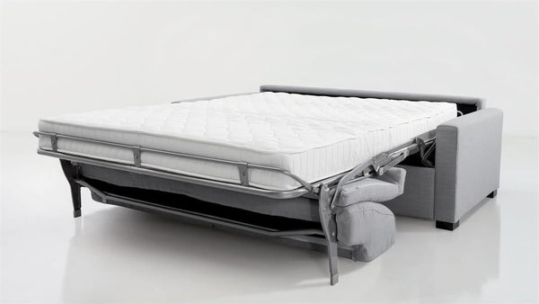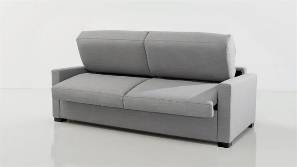 Das Sofa Luc ist ein Schlafsofa mit "Express-Öffnung" und integrierter Matratze für täglichen Gebrauch. Genießen Sie dieses 3-Sitzer-Sofa mit Stoffbezug, das ein schlichtes und zeitgenössisches Design aufweist. Sein Mechanismus für den Expressaufbau ermöglicht es Ihnen, das Sofa in wenigen Sekunden in ein Doppelbett mit den Maßen 140x190cm umzuwandeln.